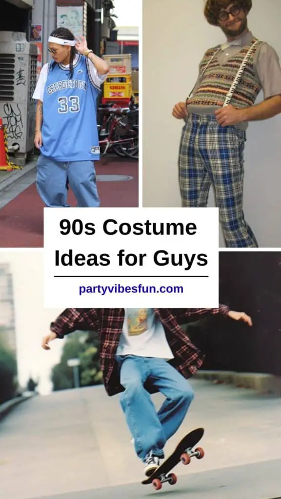 When it comes to ’90s costume ideas for guys, the decade offers a wide range of iconic looks inspired by music, film, and fashion trends. Grunge style is one of the easiest and most recognizable options—think flannel shirts layered over band tees, ripped jeans, and combat boots, a look made famous by bands like Nirvana. For a hip-hop-inspired outfit, oversized jeans, sports jerseys, bucket hats, gold chains, and sneakers channel the street style of rappers like Tupac and LL Cool J. For a pop culture throwback, you could dress as characters from TV shows like Friends or The Fresh Prince of Bel-Air, which would mean Chandler’s sweater vests or Will Smith’s colorful, baggy outfits.