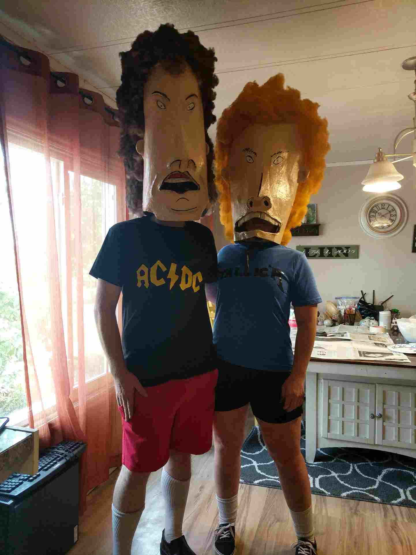 Perfect as a pair or even solo, this costume is based on the iconic MTV cartoon duo. Beavis rocks a blue Metallica tee with red shorts, while Butt-Head wears a black AC/DC shirt with gray shorts. Both need white socks and sneakers. Add cheap yellow or brown wigs styled high to mimic their exaggerated hair. Bonus points for carrying nachos or practicing their annoying giggles and catchphrases. This costume is simple, funny, and nostalgic, especially for fans of 90s MTV culture. It captures the slacker humor of the decade and is guaranteed to get laughs at any party.