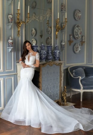 - Flattering mermaid silhouette with stretch materials