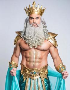- Regal ocean-themed costume with trident prop