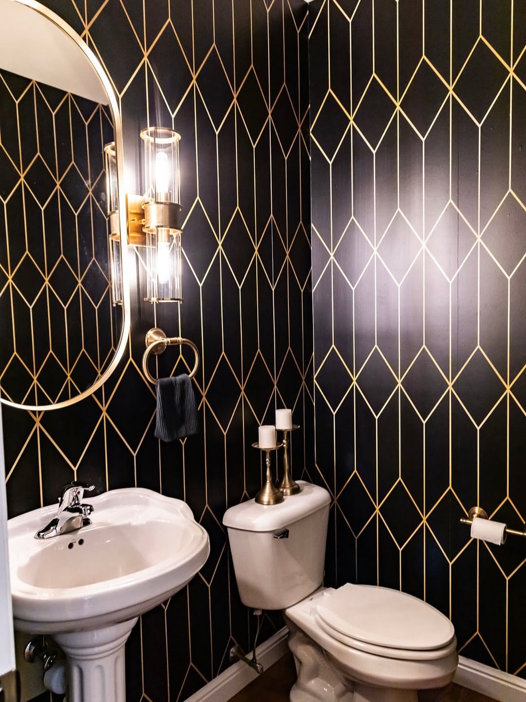 Geometric wallpaper adds visual interest and contemporary flair to bathroom interiors. Patterns such as hexagons, chevrons, or abstract shapes create movement and structure. Neutral color palettes keep the look subtle, while bold colors make a dramatic statement. Geometric designs work well in modern and urban-style bathrooms, especially when paired with sleek fixtures and minimal décor. Use it on a single feature wall to avoid overcrowding the space. This wallpaper style enhances depth, making small bathrooms feel more dynamic and stylish.