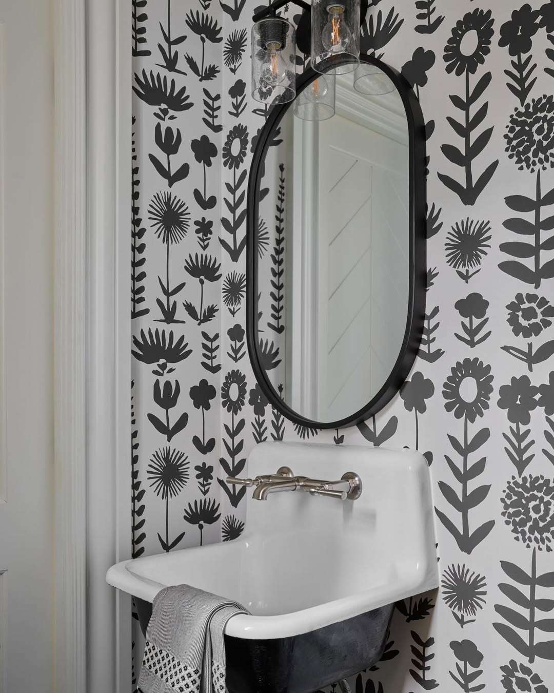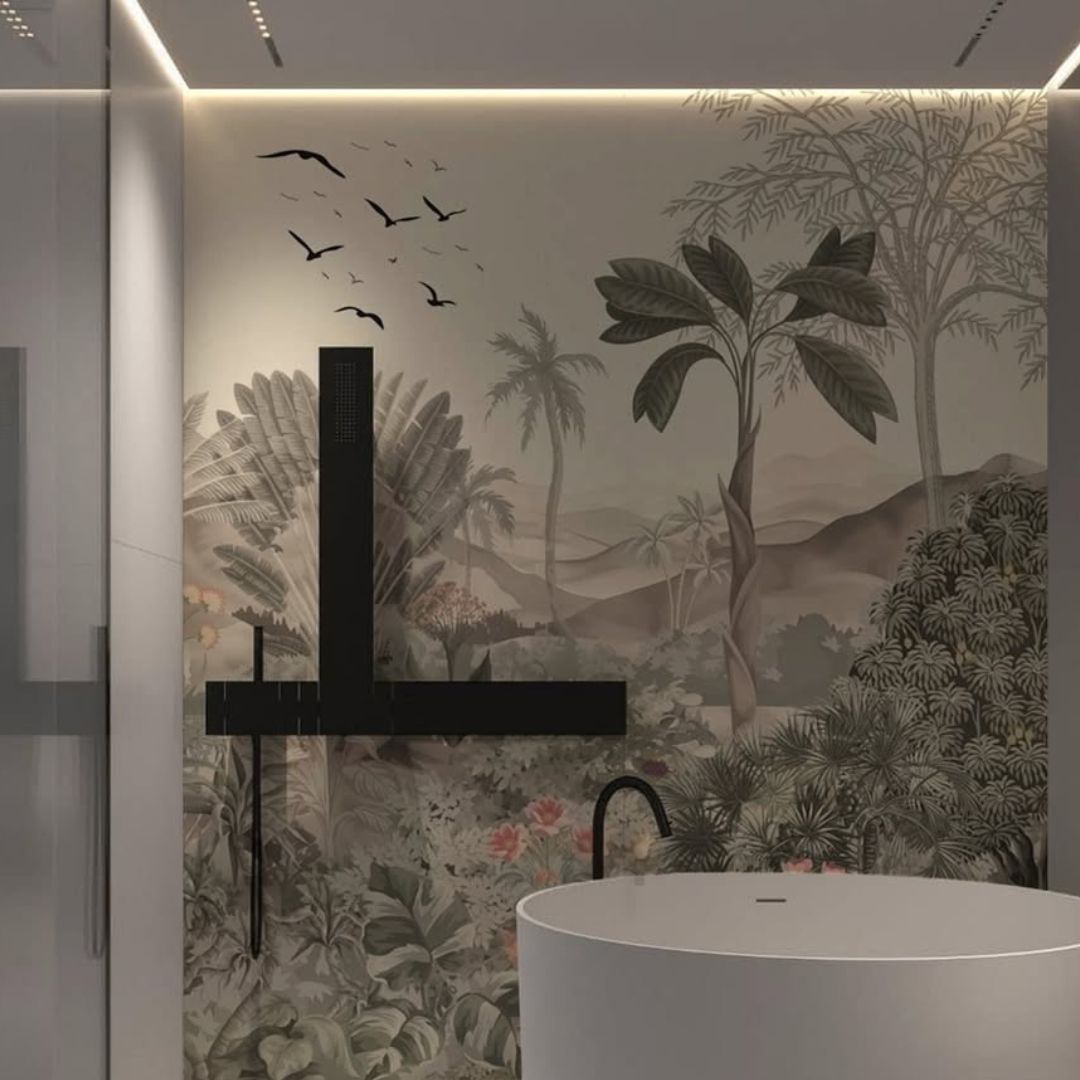 Black and white wallpaper offers a timeless and versatile design choice for bathrooms. Patterns such as stripes, florals, or abstract art create contrast and visual drama. This style complements both modern and classic interiors. Use it to highlight a feature wall or surround the vanity area. Black and white wallpaper pairs beautifully with chrome or matte black fixtures. The high contrast adds depth while maintaining a clean, elegant appearance. Waterproof wallpaper ensures durability without sacrificing style.