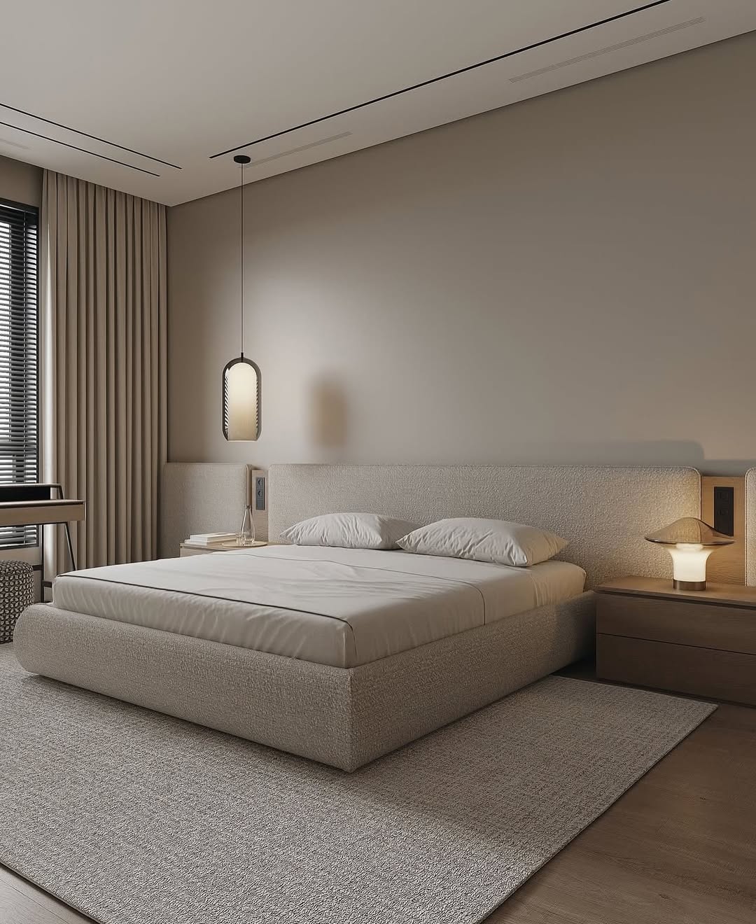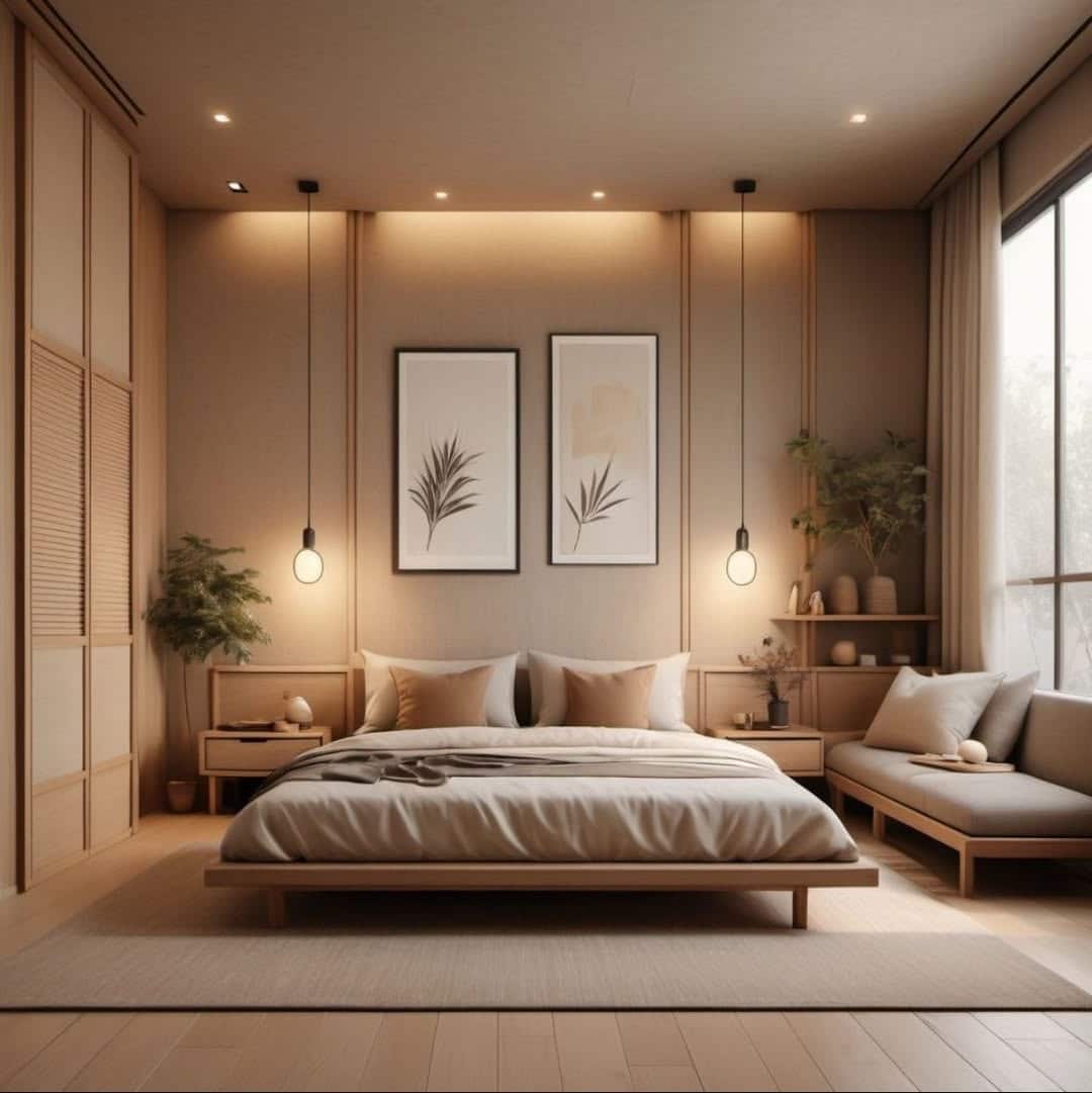 Japandi style merges Japanese minimalism with Scandinavian comfort. The focus is on simplicity, balance, and nature. Use neutral tones—beige, off-white, and soft brown—with natural materials like bamboo, rattan, and oak. Keep furniture low-profile and uncluttered. Incorporate soft textures through cotton linens and woven rugs. Add calming décor elements like bonsai plants, paper lanterns, or ceramic vases. Natural light plays an important role, so opt for sheer curtains and open layouts. The overall effect is tranquil, harmonious, and deeply restful—a sanctuary that celebrates mindfulness and understated elegance.