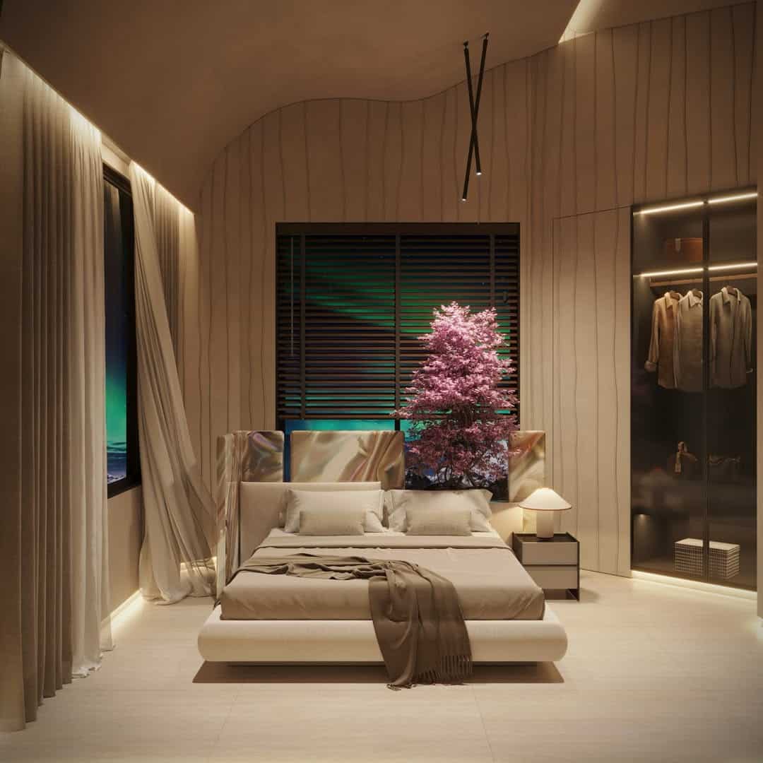 Install LED strips or low-profile lighting under the bed frame or along the bottom edge of furniture for a subtle glow that adds both safety and style. These lights are especially useful for nighttime navigation without disturbing your sleep partner. Often motion-activated, they only turn on when needed. Toe-kick lighting can also be added beneath dressers or built-in cabinetry for a floating effect. This technique adds depth and dimension to the room while maintaining a clean, clutter-free look. It’s ideal for modern or minimalist bedrooms aiming for a futuristic vibe.