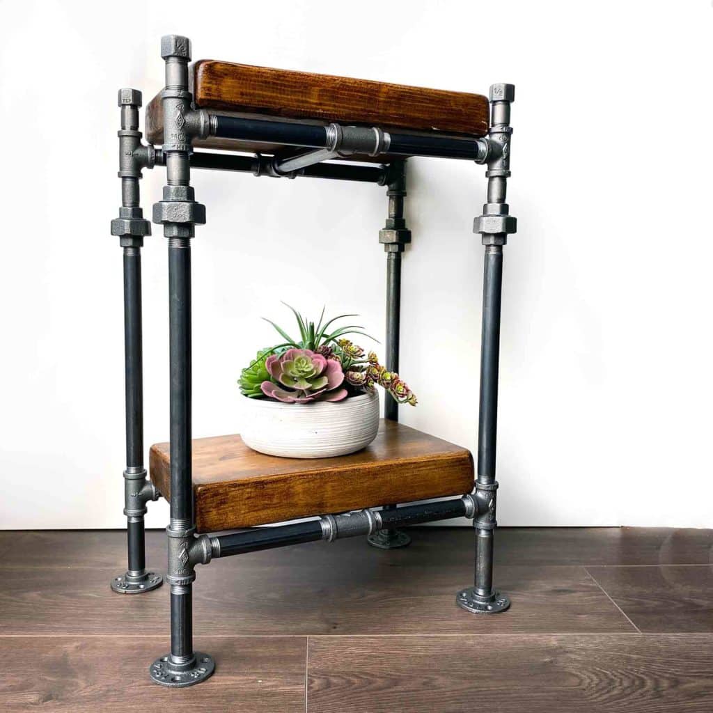 A nightstand made from metal pipes and reclaimed wood adds an industrial flair to your space. This design blends raw materials for a rugged, modern aesthetic. You can opt for a simple pipe frame with a single wooden surface or add multiple shelves for more storage. The combination of matte black pipes and rustic wood enhances loft-style or urban bedrooms. It’s also customizable in size and height. For added functionality, attach wheels to make it mobile. This bedside table balances style with durability, while its unique handmade appeal makes it a focal point in the room.