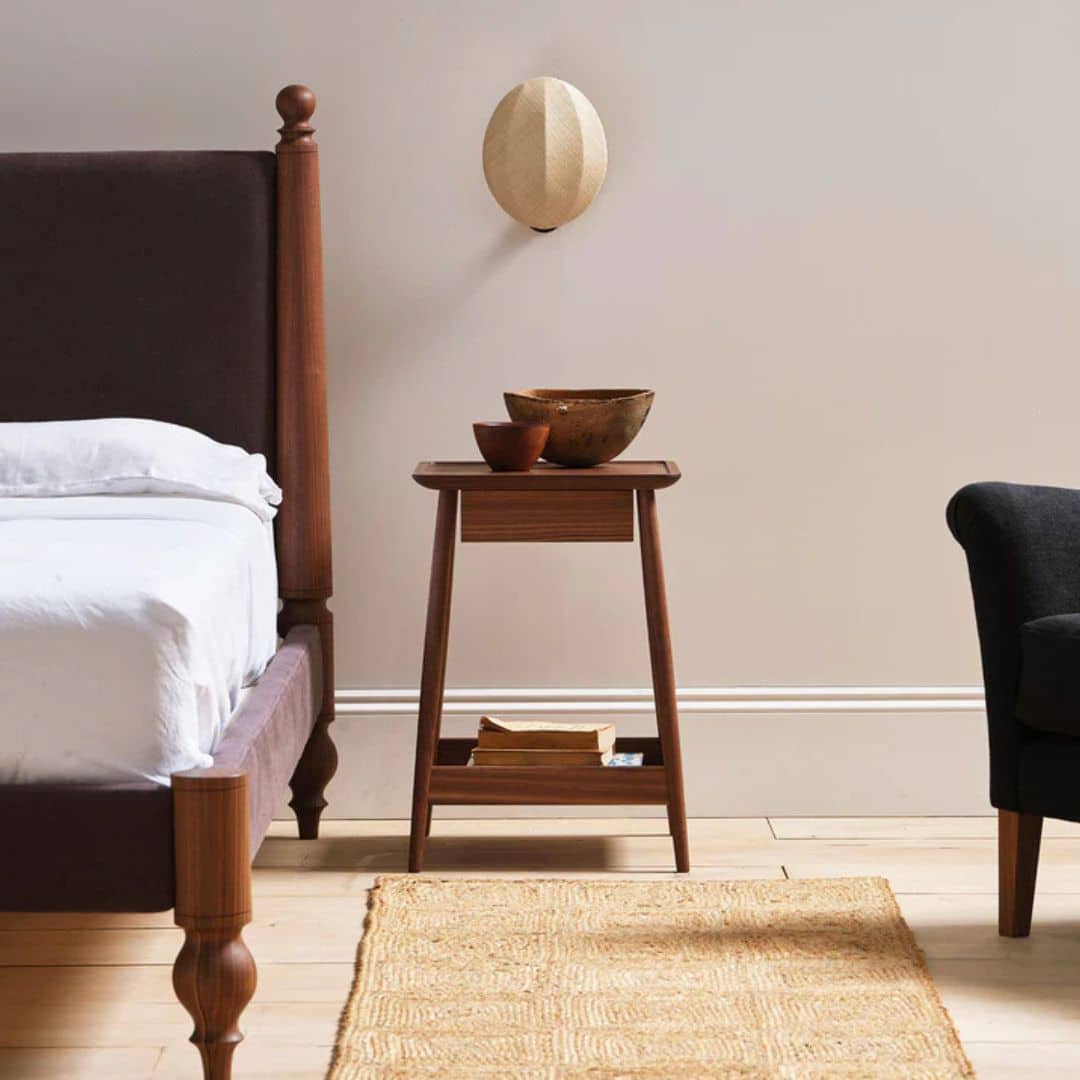 A polished tree stump brings organic charm to the bedroom. Its raw, natural texture makes it a standout piece, ideal for rustic, Scandinavian, or eco-inspired interiors. Sanded and sealed, the stump becomes a sturdy nightstand that’s both durable and sustainable. The rich grain patterns and natural imperfections add earthy character. Each piece is unique, ensuring no two tables are alike. Pair it with soft textiles, greenery, or neutral tones for a calming retreat. This bedside table idea connects you to nature, providing a grounding presence in the room while doubling as a conversation-worthy piece of furniture.