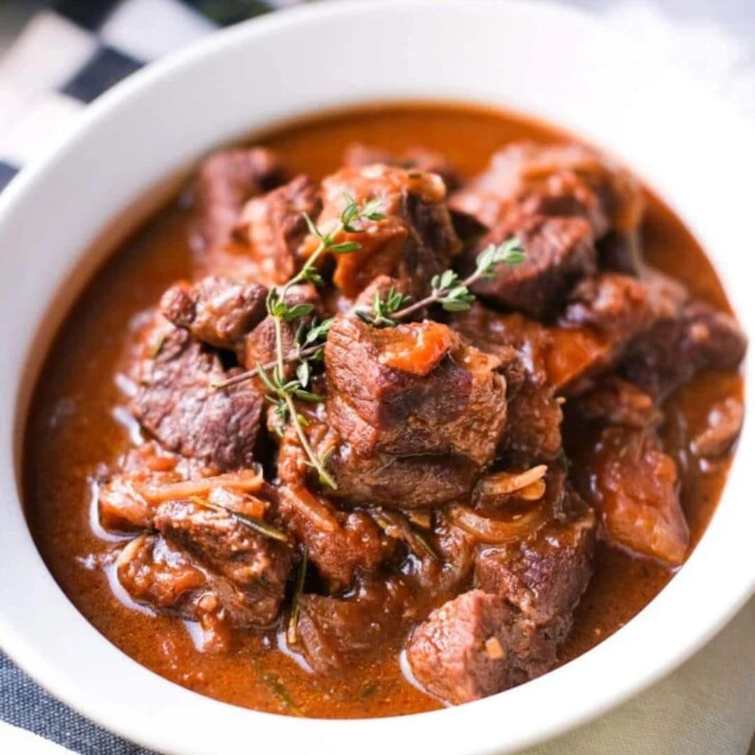 Luxurious French-inspired dish with beef cubes braised in wine until melt-in-the-mouth tender.