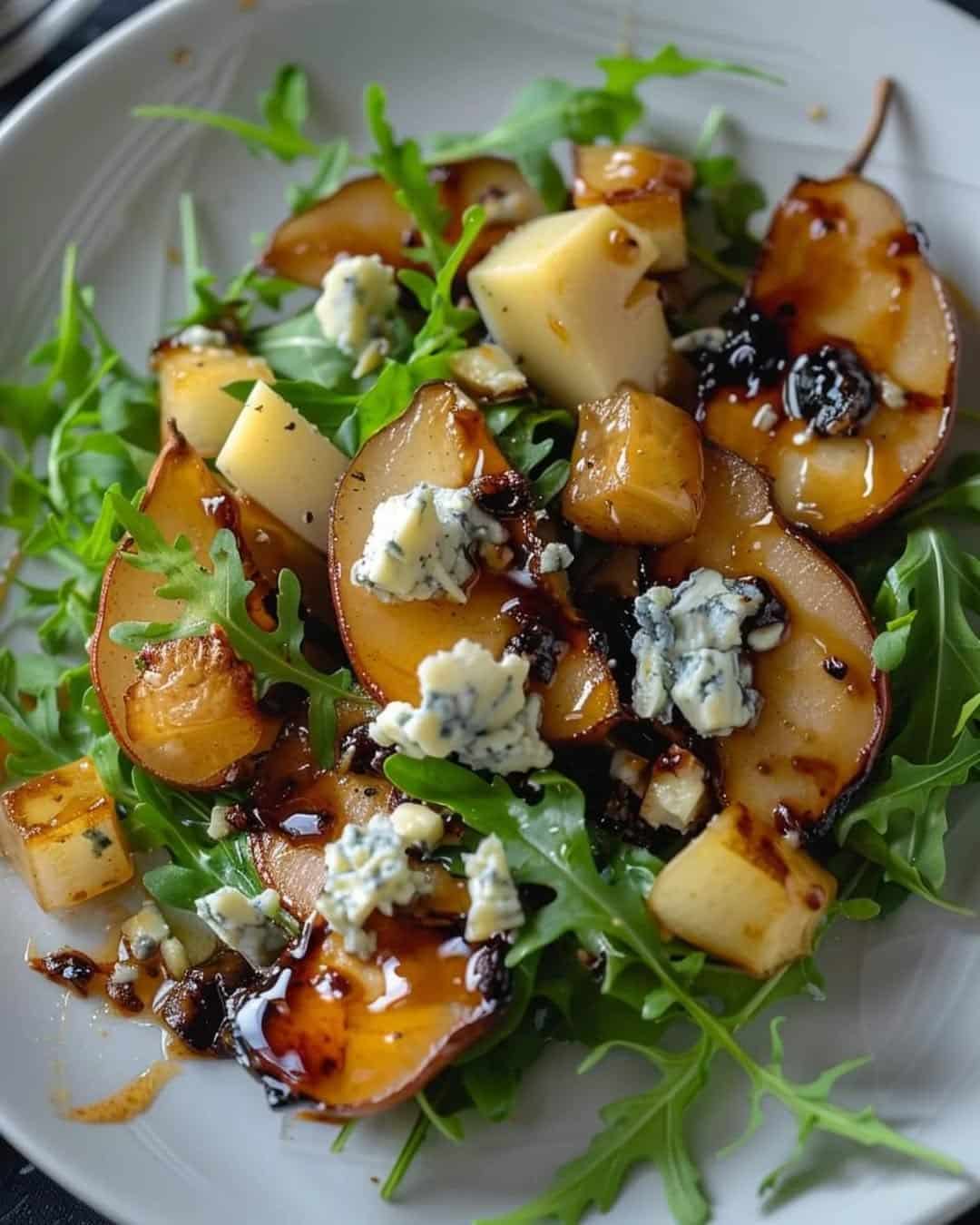 A refreshing salad that balances creamy blue cheese with sweet ripe pears and crunchy walnuts. The honey vinaigrette ties everything together with a hint of sweetness and acidity.
