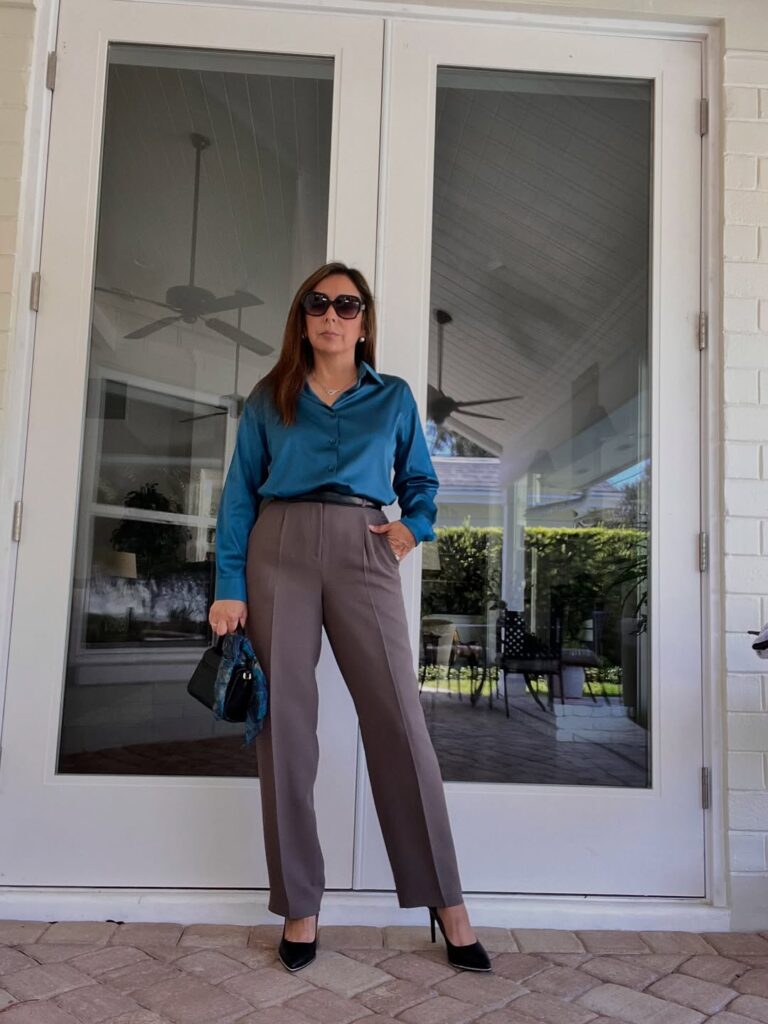 A statement blazer adds personality to a professional outfit without compromising professionalism. Choose a blazer with subtle patterns, bold colors, or unique textures. Pair it with neutral trousers or a skirt and a simple top to balance the look. This outfit allows professionals to express style while staying office-appropriate. Complete the look with classic shoes and understated accessories. It’s ideal for workplaces that encourage individuality while still expecting a polished appearance.