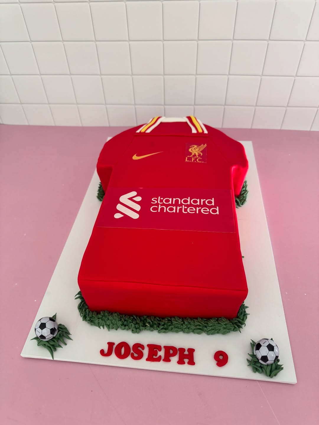 A cake shaped and decorated like a favourite sports jersey.