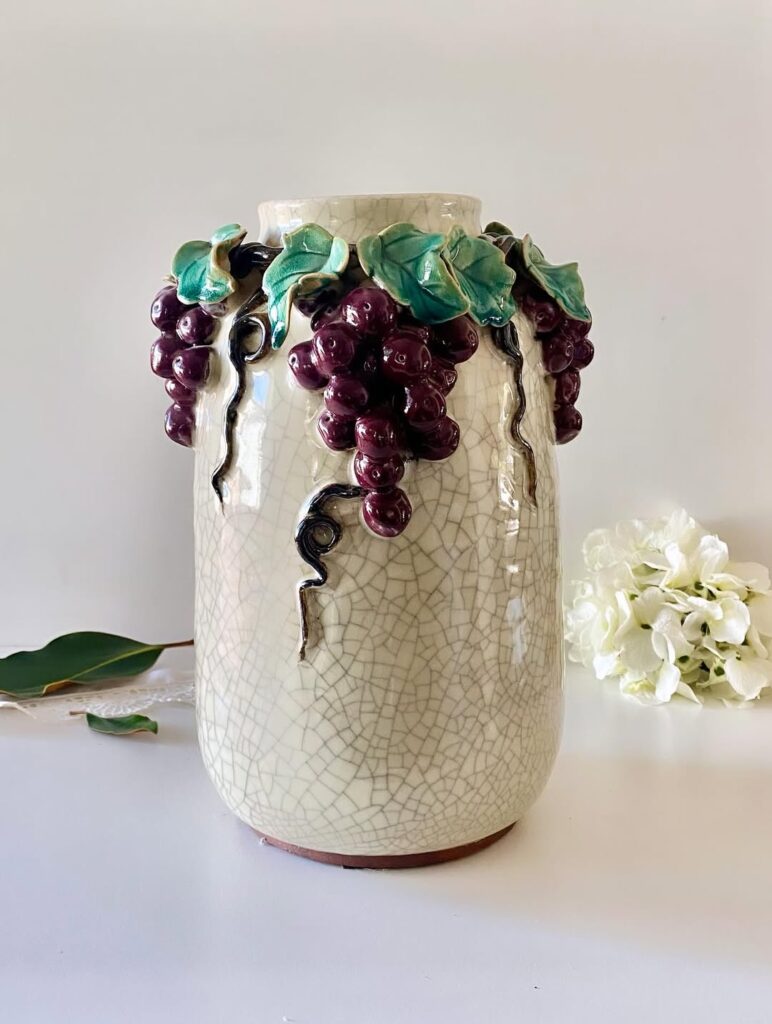 A vintage crackle-glaze ceramic vase has a delicate web of fine lines across its surface, created intentionally in the glaze. This crackled finish gives an aged, antique feel. Soft ivory, pale celadon, or faded blue enhance the vintage mood. The vase feels like a treasured heirloom discovered at a market. It pairs beautifully with classic roses or peonies. Over time, the crackle can subtly deepen in character. This style suits traditional or eclectic homes and adds a sense of history, craftsmanship, and quiet elegance to your décor.