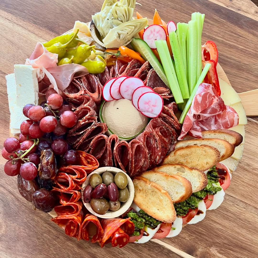 Inspired by sun-kissed coastal flavors, this platter bursts with herbs, olives, and creamy cheeses common to Greek and Italian cuisine. Light, vibrant, and perfect for warm-weather entertaining.