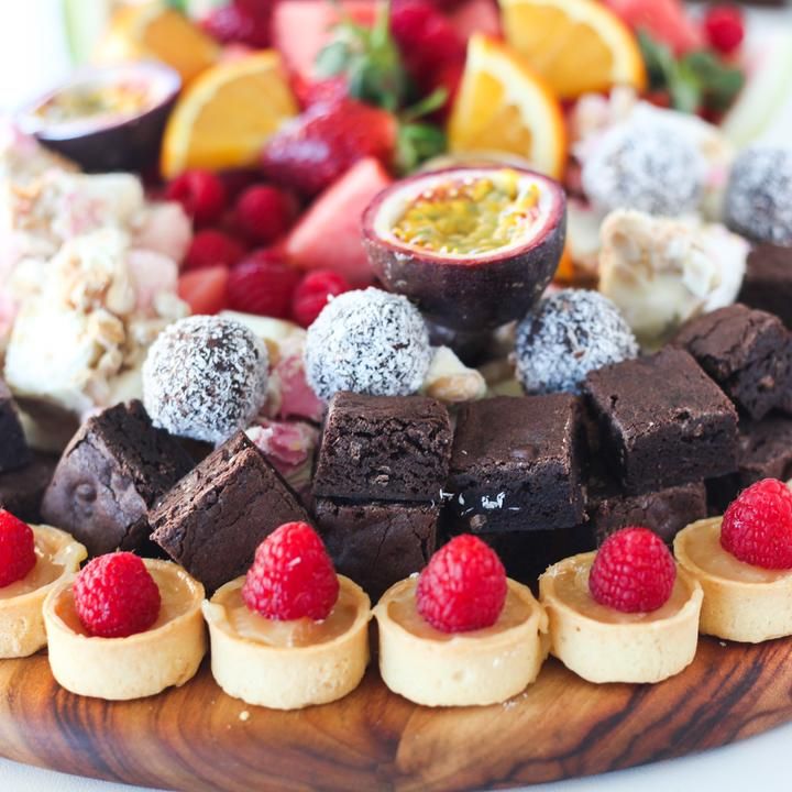 Perfect for after-dinner enjoyment, this platter blends creamy cheeses with chocolates, fruits, and sweet spreads. A dreamy treat for sweet-toothed guests.