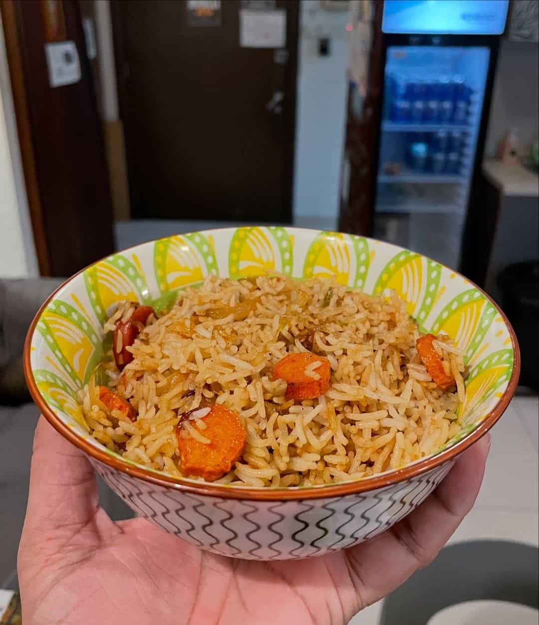 7. Serve: Fluff rice, taste, adjust seasoning, and serve hot.
