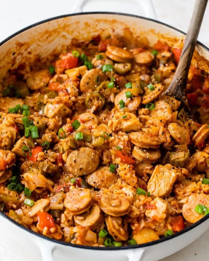 A Creole-inspired rice dish with chicken sausage, spices, and bold flavor.