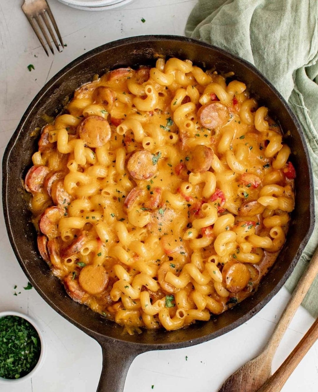 5. Combine: Slice the sausages into chunks and return to the skillet. Stir everything together and let simmer for 8–10 minutes until flavors blend.