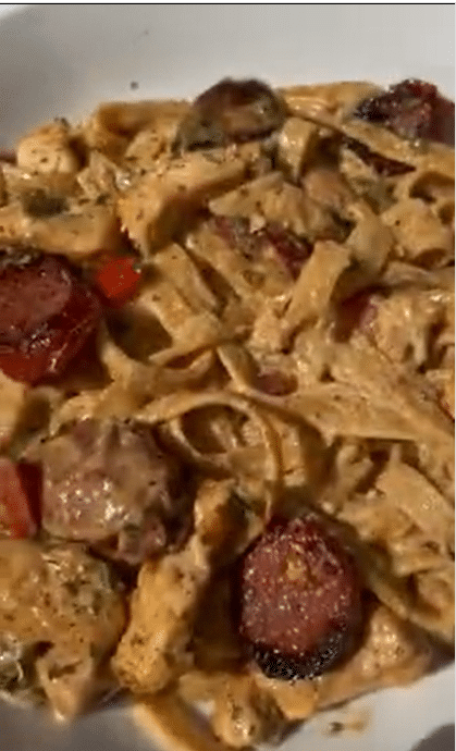 Creamy, indulgent, and filling—this pasta pairs chicken sausage with a rich Alfredo sauce.