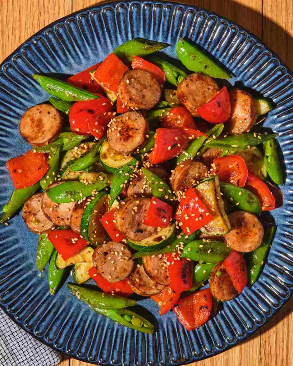 A quick Asian-inspired dish with crisp veggies and savory sausage.