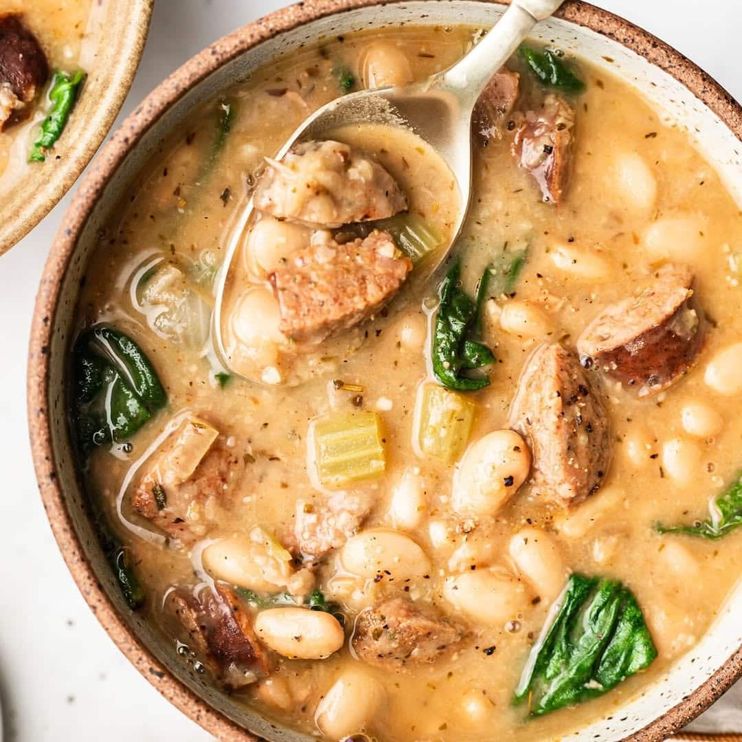A warming, protein-rich soup loaded with beans, veggies, and sausage.