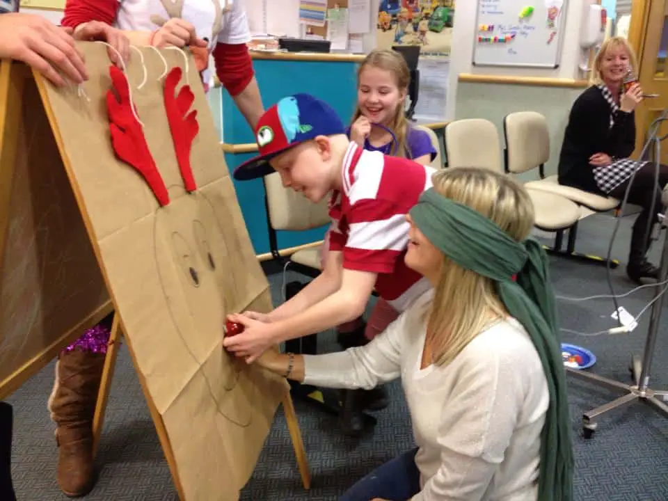A festive twist on “Pin the Tail on the Donkey” — players try to place Rudolph’s red nose while blindfolded!