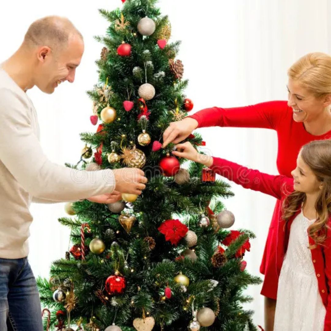 Assign dice numbers to decorations (e.g., 1 = star, 2 = lights, 3 = ornaments, 4 = garland, 5 = candy canes, 6 = presents).