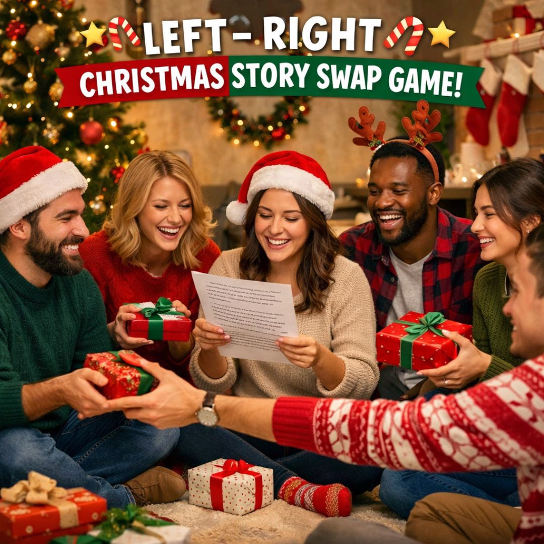 One person reads a Christmas story aloud that includes the words “left” and “right” many times.