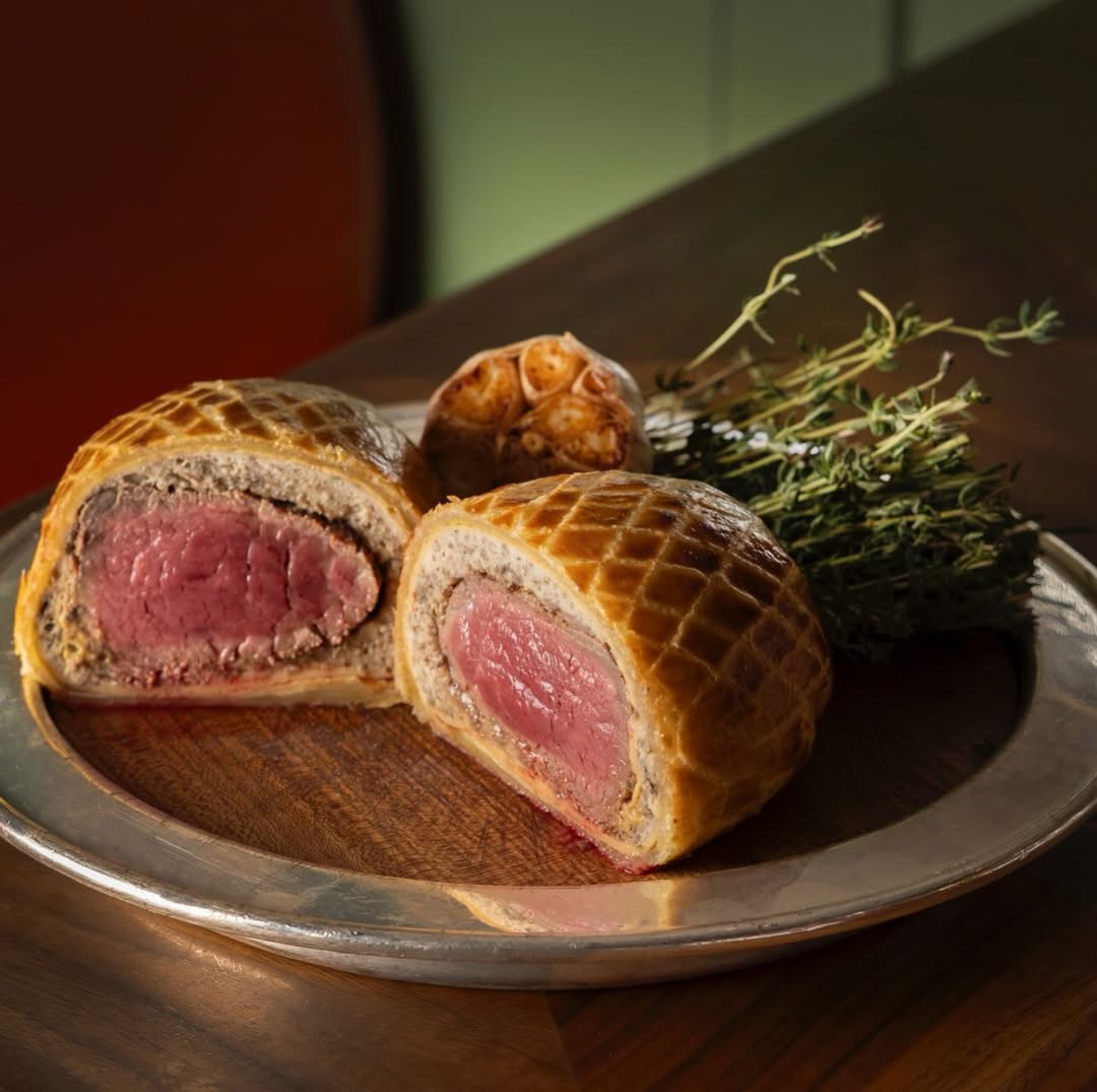 Tender beef tenderloin wrapped in mushroom duxelles and buttery puff pastry for a luxurious holiday entrée.