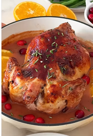A juicy chicken roasted with tangy cranberries and zesty orange slices for a festive, colorful presentation.