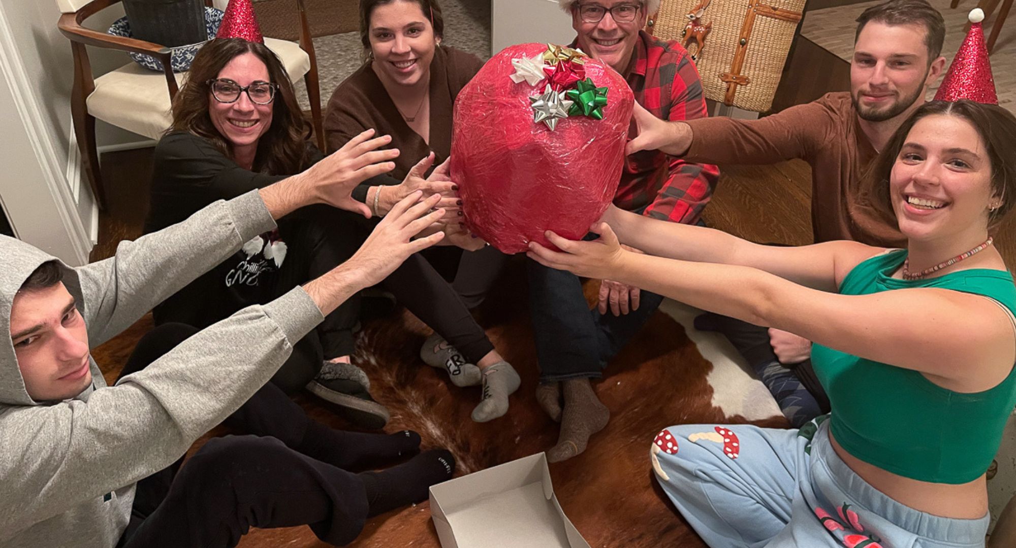 A traditional holiday party favorite where layers of plastic wrap hide exciting surprises.