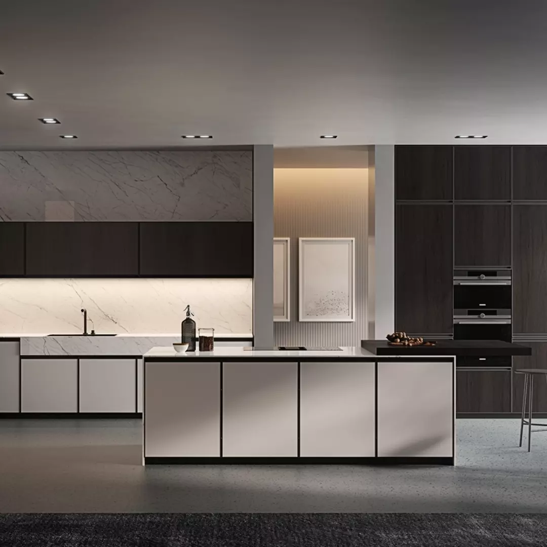 Contemporary kitchen ideas focus on clean lines, functional elegance, and a balanced blend of aesthetics and practicality. These kitchens often feature open-concept layouts, allowing seamless movement and visual flow between cooking, dining, and living areas. Materials tend to be sleek and high-quality—think quartz or marble waterfall islands, matte-finish cabinetry, integrated appliances, and hidden storage that keeps surfaces clutter-free. Lighting plays a major role: layered illumination through recessed lights, LED under-cabinet strips, and sculptural pendant fixtures enhances the modern ambiance while also supporting task efficiency.