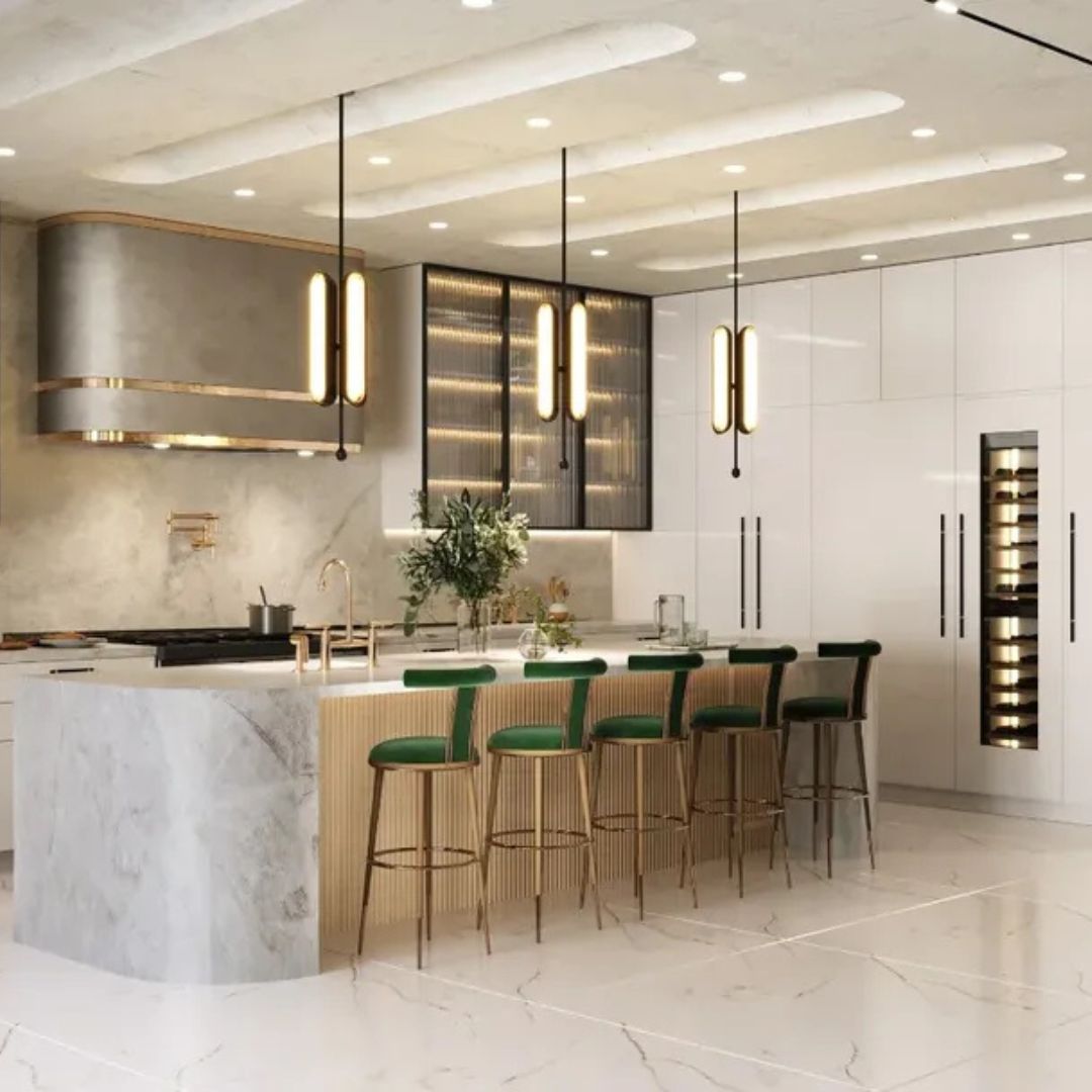 Color palettes lean toward neutrals such as white, charcoal, and soft beige, often warmed by natural wood accents to create harmony between modern minimalism and inviting comfort. The use of smart technology—touchless faucets, app-controlled ovens, and intelligent refrigerators—adds convenience and futuristic appeal, transforming the kitchen into a space that’s not only stylish but deeply intuitive and efficient.