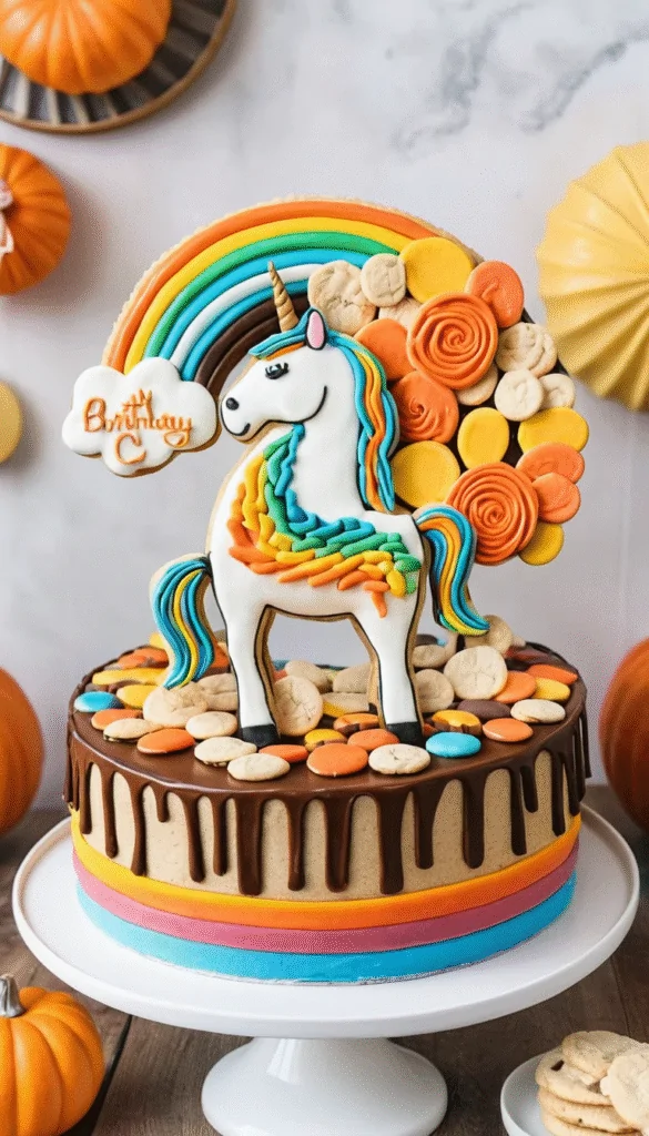 - Rainbow Icing with Unicorn Horns on Cookie Cake
