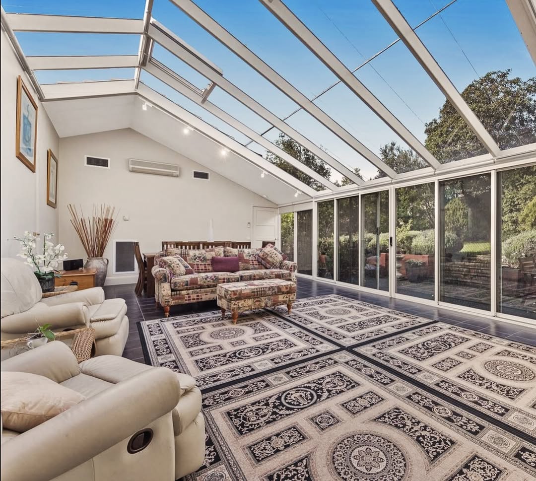 A glass-enclosed covered patio blends indoor comfort with outdoor views. Large glass panels or sliding doors protect the space from weather while allowing sunlight to flood in. This design is perfect for enjoying garden views year-round without exposure to wind or insects. Glass patios can be climate-controlled with heaters or fans, making them suitable for all seasons. Frameless or slim-frame glass creates a modern, airy feel, while tinted or frosted options provide privacy. This idea is especially appealing for homeowners seeking a luxurious, sunroom-style patio experience.
