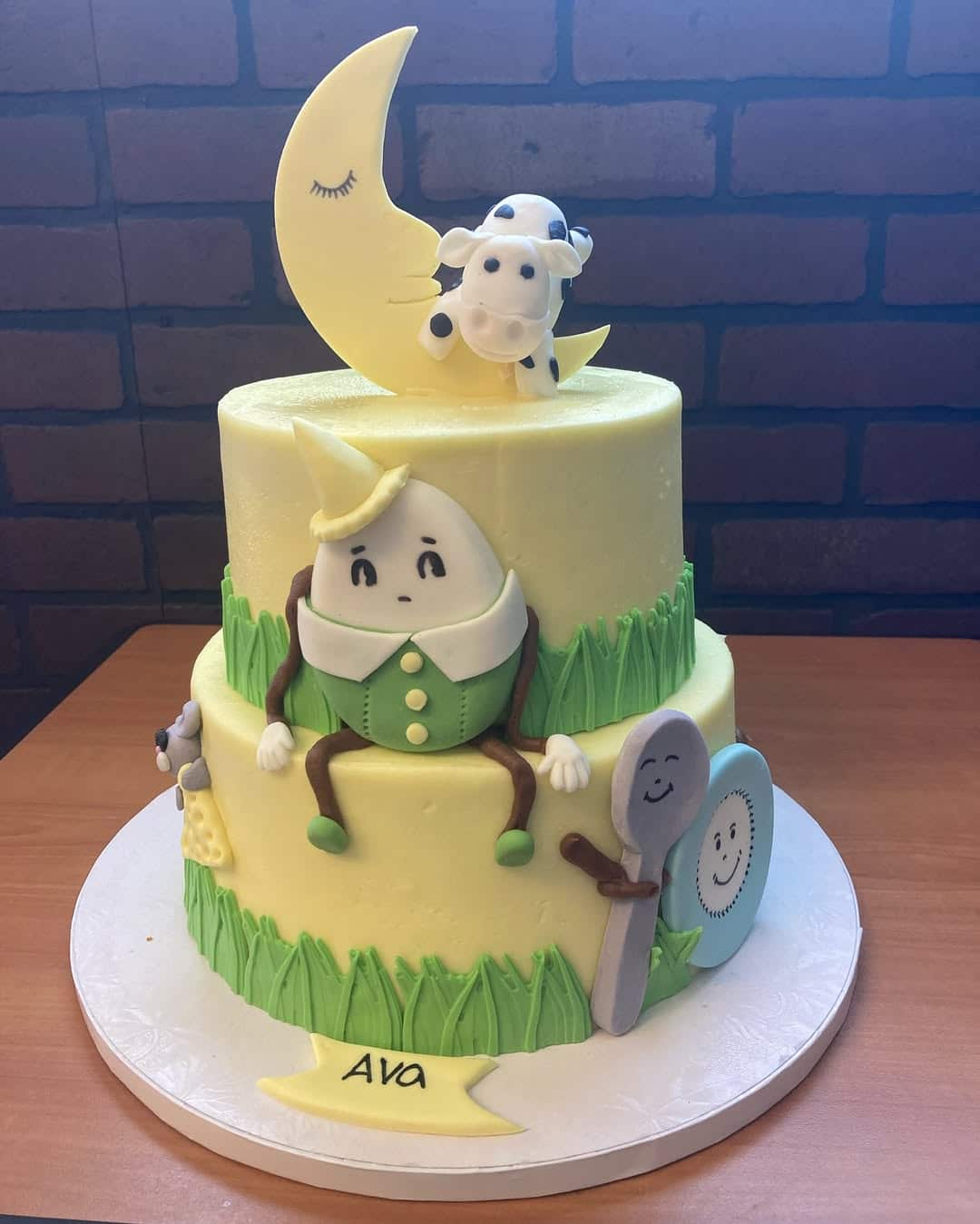 Inspired by illustrated farm storybooks, this cake features hand-painted cow designs on fondant using edible food paints. Scenes might include cows jumping over the moon, grazing in a meadow, or wearing clothes like in children’s books. The cake can be single or multi-tiered, with each tier telling a part of the “story.” Inside, use colorful cake layers to add a surprise when sliced. This style allows for maximum creativity and personalization, making it perfect for themed birthdays or book-themed events.