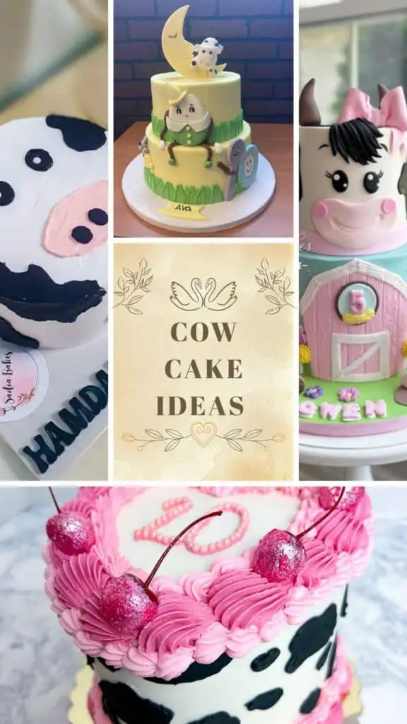 Cow Cake Ideas – Cow cake ideas are perfect for animal-themed parties, farm celebrations, or just for someone who loves adorable designs. A simple yet charming approach is to create a round cake decorated with white frosting and black fondant patches to resemble a cow’s spots, topped with fondant ears, horns, and a cute cow face. For a more playful design, you could make a 3D sculpted cow-shaped cake, where the entire dessert is modeled to look like a lying or standing cow, complete with a friendly expression. Adding buttercream grass at the base or fondant flowers can give it a farmyard feel. Some bakers like to make multi-tiered cow cakes, with each tier alternating between cow print and bright farm colors, sometimes topped with a small fondant farmer or barn. For a whimsical twist, a “cow unicorn” cake combines cow spots with a colorful unicorn horn and pastel mane for a magical farm-meets-fantasy look. With the right mix of colors, textures, and cute detailing, cow cakes can be both delicious and irresistibly charming.