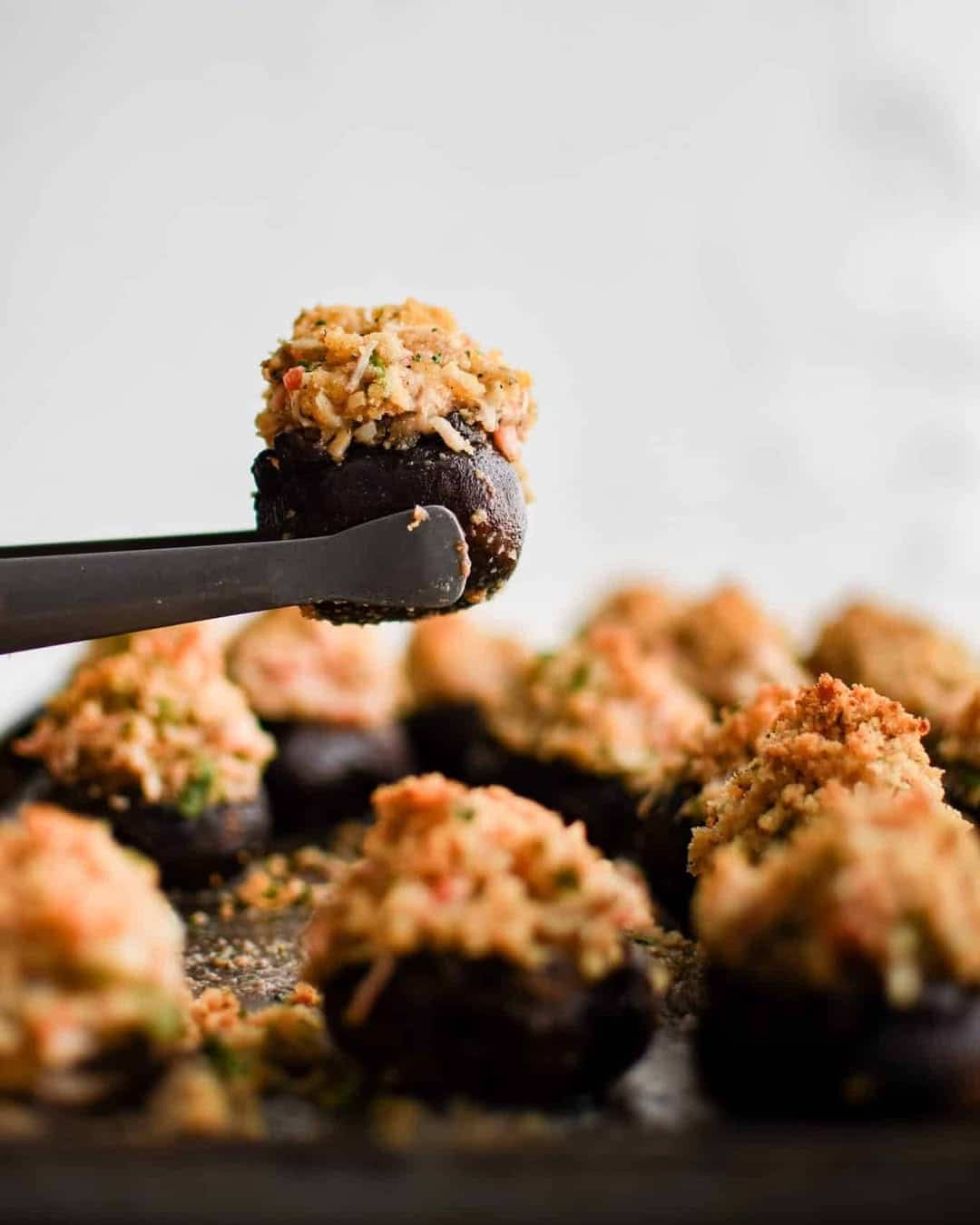 Juicy mushroom caps filled with a cheesy crab mixture, then baked until golden. A bite-sized, crowd-pleasing appetizer.