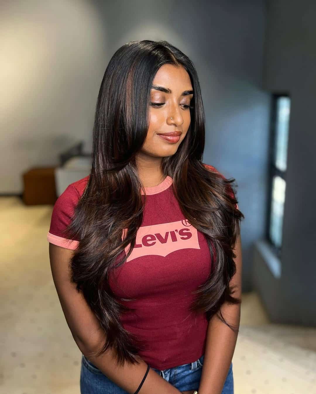Black cherry hair color is a seductive combination of dark brown or black with subtle red and purple undertones. It’s especially flattering on medium to deep skin tones but can work on fair skin for a bold contrast. The color has depth and personality, showing different hues depending on lighting. It’s a great transitional color for those moving from natural to more adventurous tones. While darker hair holds the base well, regular glossing or toning may be needed to keep the cherry tones vibrant. This shade looks beautiful on straight styles and voluminous curls alike.