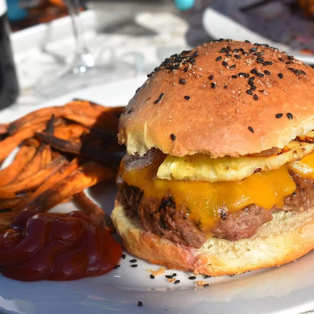 An Asian-inspired burger glazed in sweet teriyaki sauce, topped with pineapple for a tropical twist.