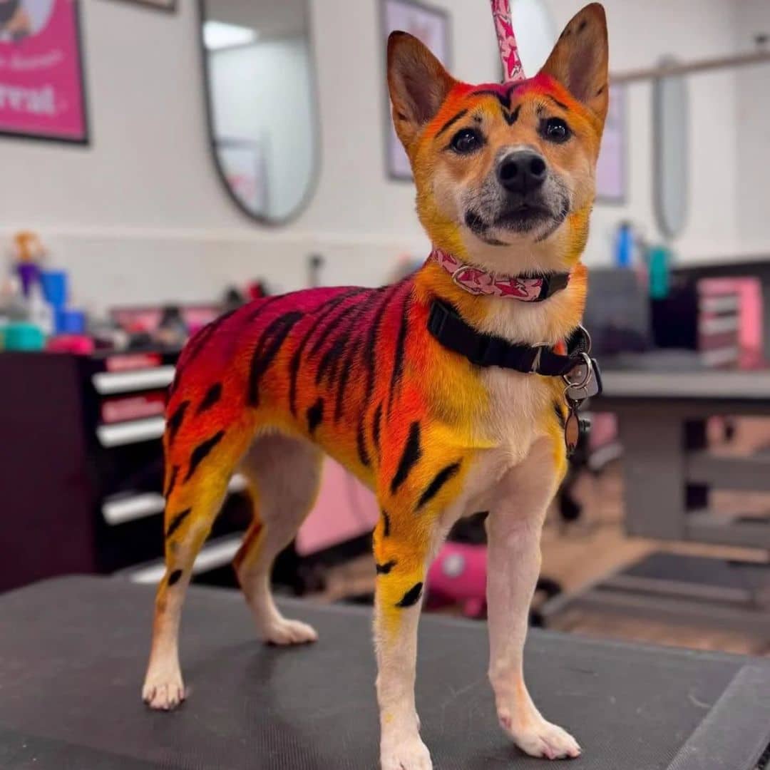 Transform your pup into another creature by dyeing fun animal prints onto their fur. Examples include leopard spots, tiger stripes, or even a panda-like black-and-white design. Pet-safe stencils can help achieve these patterns without stress. This idea works especially well for short-haired breeds since the designs are more visible. It’s a playful way to give your dog a costume-like effect without needing clothes. Perfect for pet costume contests or themed parties, animal-inspired dye jobs always get attention. Just remember to keep sessions short so your pup doesn’t get restless.