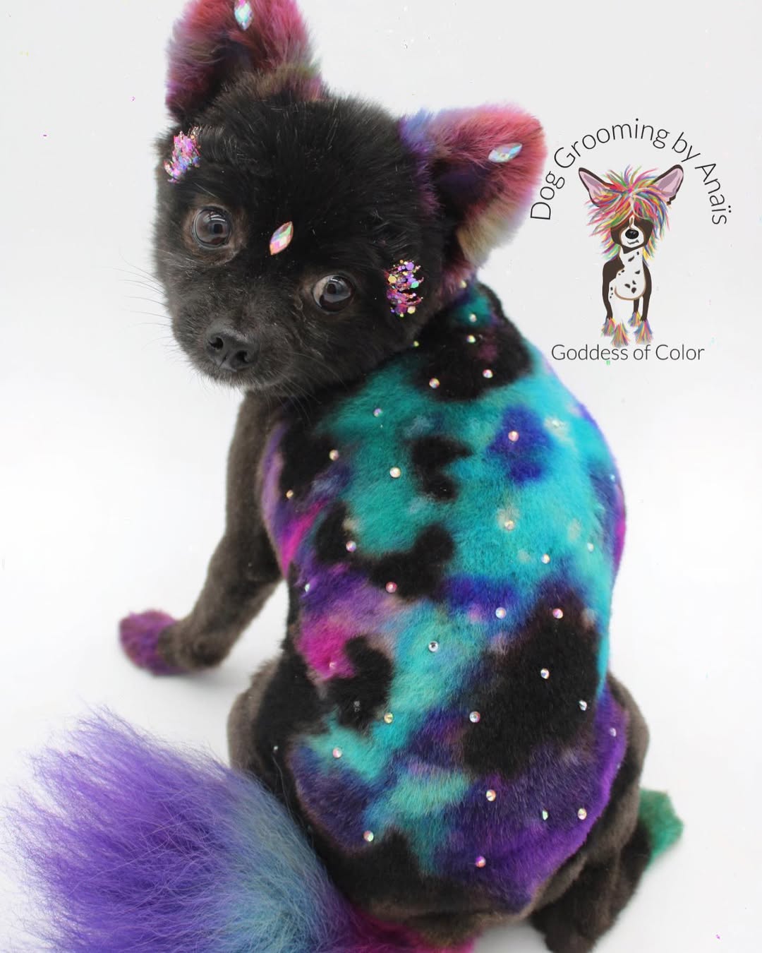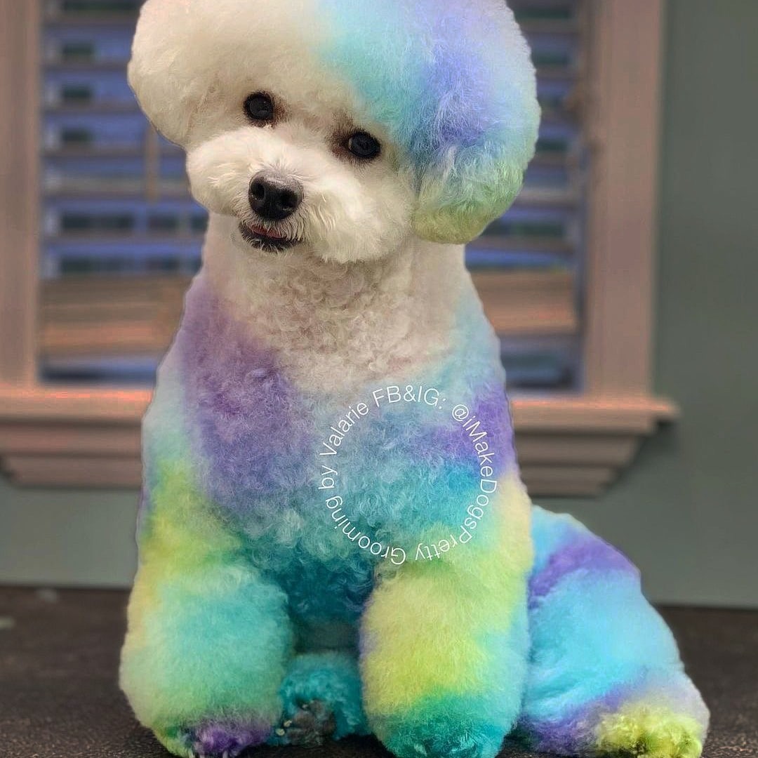 An ombre style gives your dog’s fur a sleek and fashionable look. The idea is to start with a darker shade near the roots and gradually fade into a lighter shade or a different color towards the tips. For example, pink fading into white or blue fading into silver looks stunning. This style is especially striking on dogs with longer fur like Poodles or Shih Tzus. The ombre technique is subtle yet eye-catching, offering a modern salon-inspired finish. It’s a great choice if you want something stylish but not too wild.