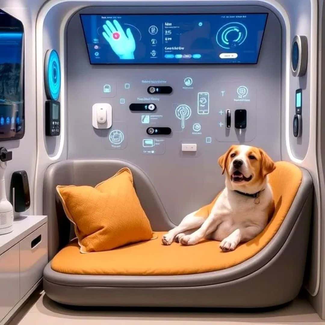 Equip the room with modern technology like an automatic feeder, pet camera, and self-cleaning water dispenser. Add a smart speaker that can play soothing music or issue voice commands. Interactive treat-dispensing toys can keep your dog entertained while you’re away. A charging station for grooming clippers, trackers, and pet gadgets helps keep everything in one place. This futuristic setup is perfect for tech-loving pet parents who want to stay connected to their pup and provide convenience, safety, and enrichment through smart devices.