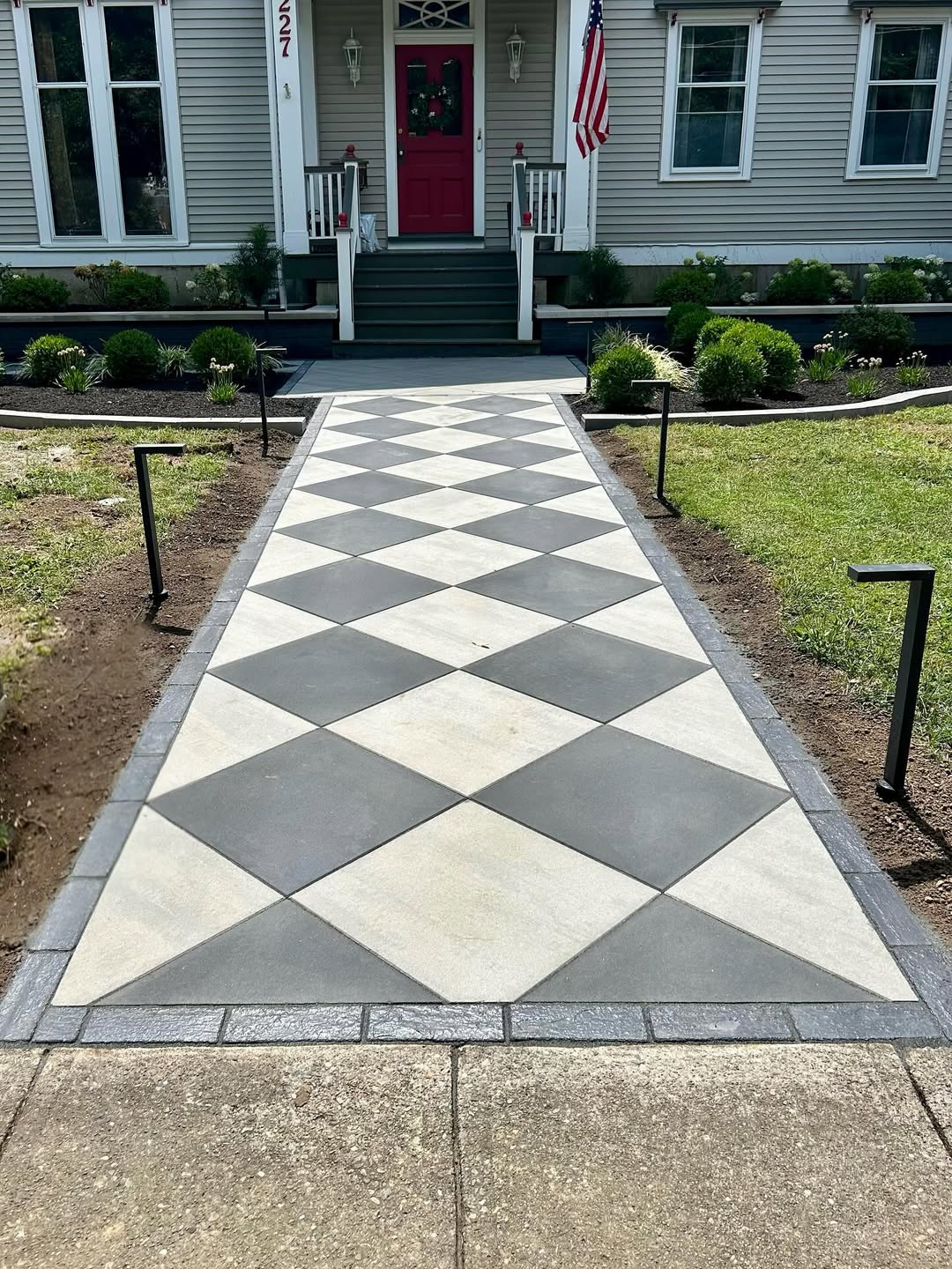 A checkerboard pattern gives your driveway a classic and eye-catching appeal. Traditionally done in black and white, you can experiment with softer hues such as gray and cream for a subtler look. The crisp, repeating squares add a sense of order and elegance to your entrance. This style works well for both modern and colonial-style homes, creating a sense of grandeur. It’s relatively simple to achieve with stencils and high-quality outdoor paints. For durability, a topcoat will prevent fading and wear from cars or foot traffic.