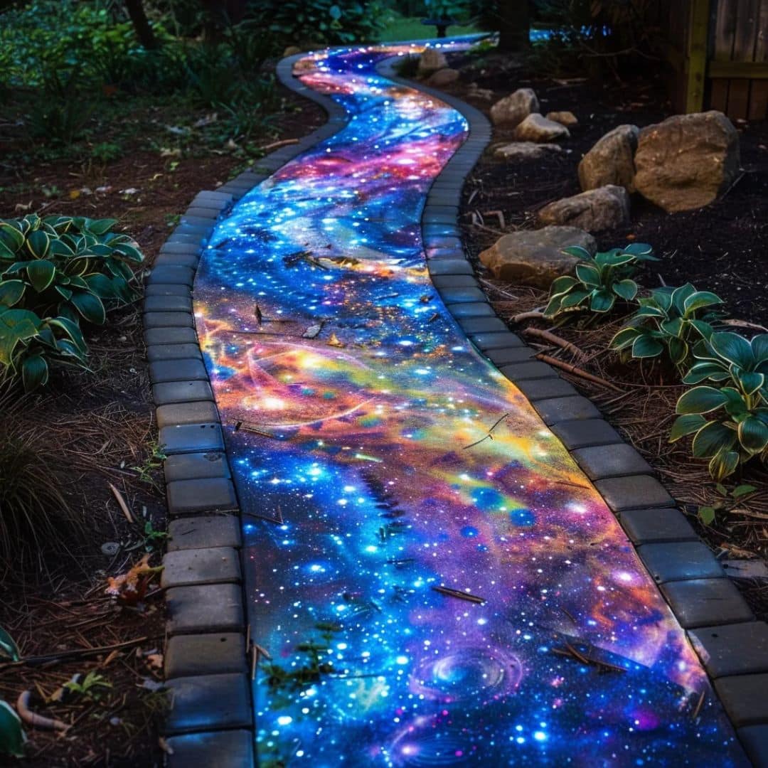 Turn your driveway into a cosmic masterpiece by painting a galaxy-inspired theme. Shades of deep blue, purple, black, and white create a dreamy night-sky effect, with stars, swirls, and even planets incorporated into the design. This bold idea is perfect for those who enjoy unique and artistic expressions. It not only transforms the driveway into a conversation starter but also adds personality to your home exterior. Glow-in-the-dark or reflective paints can take it to the next level, making the driveway sparkle under headlights at night.