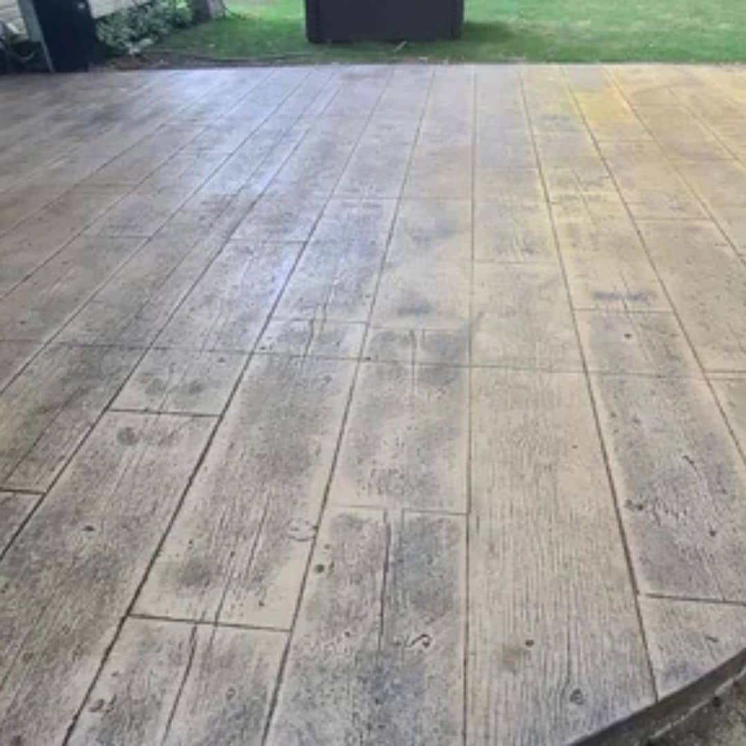 Achieve the warm look of wooden planks without the maintenance by painting your driveway to resemble wood. Faux wood-grain painting techniques create a realistic effect with shades of brown and subtle streaks. This design is particularly appealing for rustic or farmhouse-style homes. It provides a cozy, natural feel while still retaining the strength and durability of concrete. Sealed properly, this style resists stains, oil, and harsh weather. Unlike real wood, it won’t warp or rot, making it a practical yet aesthetic option for a unique driveway finish.