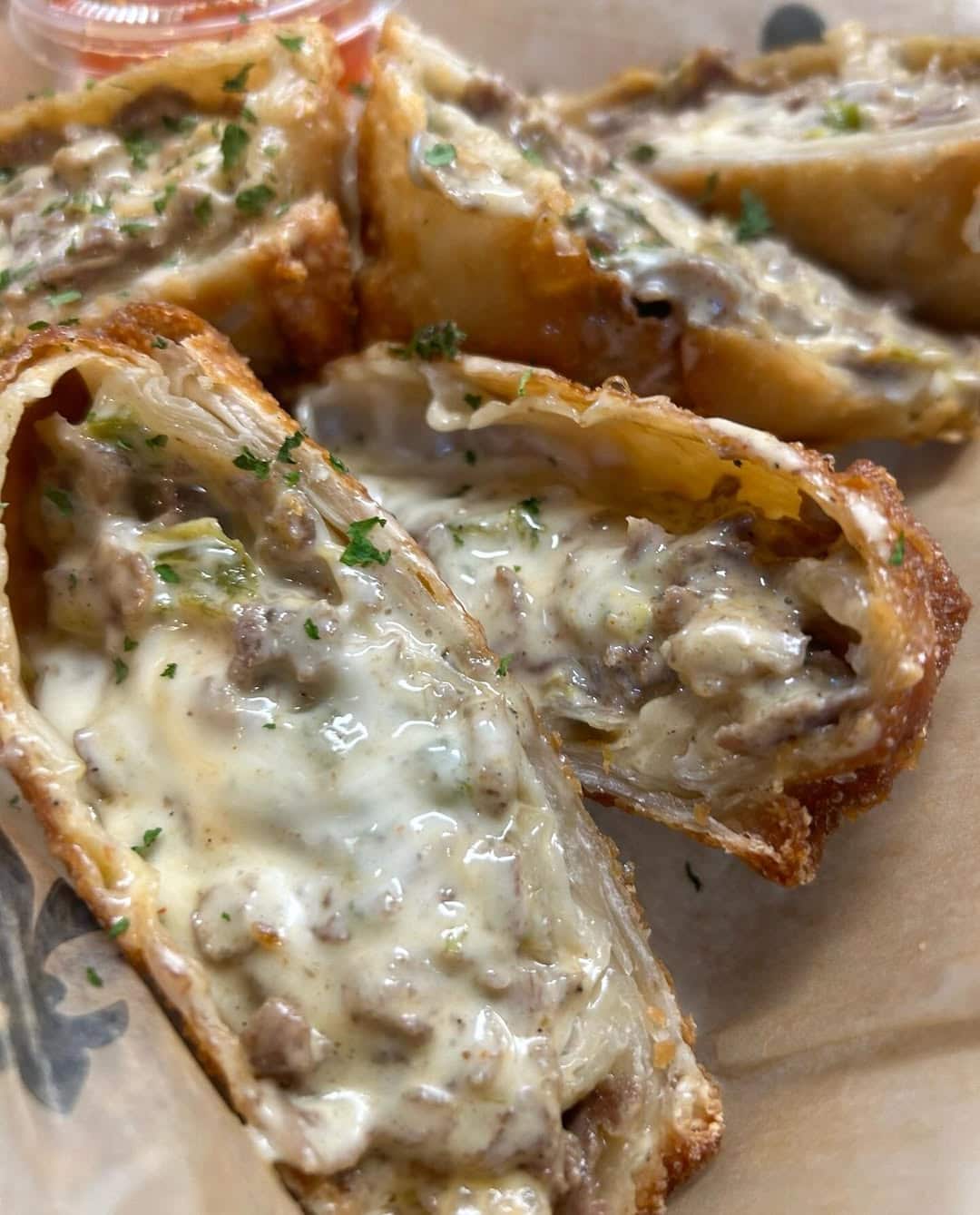 Everything you love about a cheeseburger in a crispy eggroll shell.