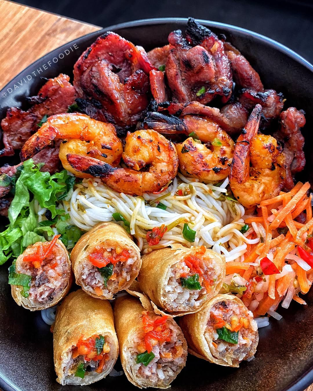 Crunchy eggrolls filled with shrimp, glass noodles, and Asian aromatics.