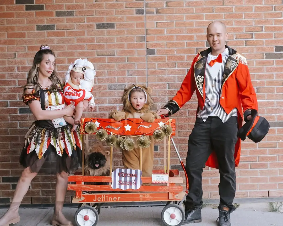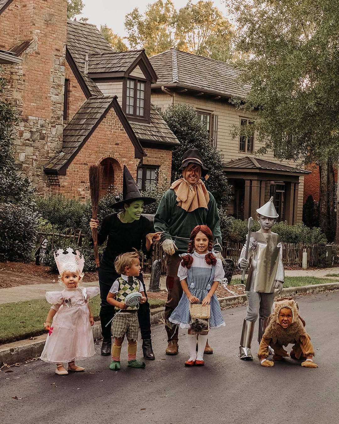 Take a trip down the yellow brick road with Dorothy, Scarecrow, Tin Man, Cowardly Lion, Glinda the Good Witch, and the Wicked Witch. Mom or dad could be the Wizard, while kids take on the central roles. Costumes can be homemade with overalls, silver-painted cardboard, straw hats, and faux fur. Accessories like a picnic basket with a plush Toto or a glittery wand enhance the magic. This theme allows for colorful creativity and instantly recognizable characters. It’s a whimsical choice that’s cheerful but still Halloween-appropriate, especially if you add spooky twists like a darker witch’s makeup or glowing emerald accents.