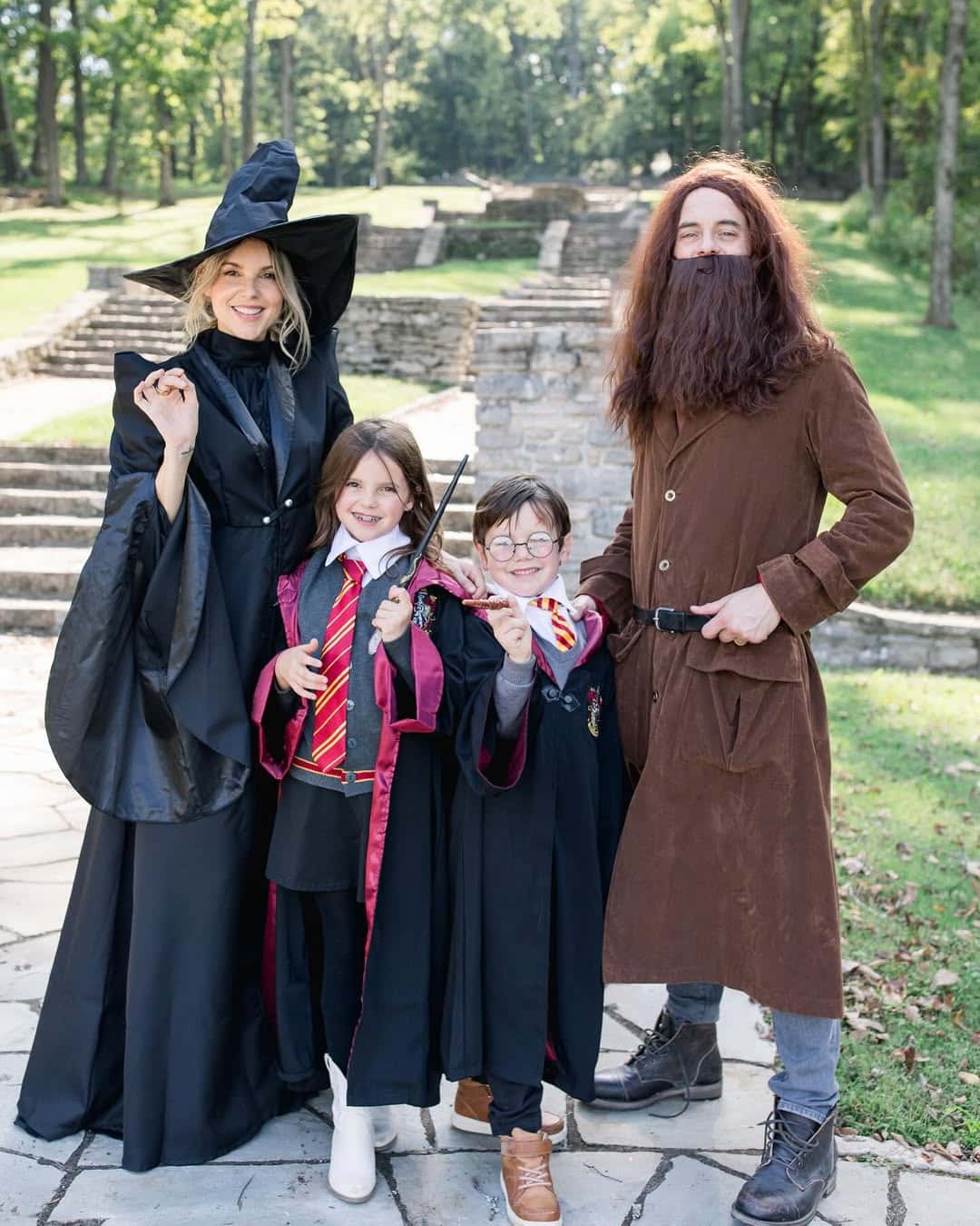 Step into Hogwarts with robes, wands, and scarves in house colors. Parents can be Professors Dumbledore or McGonagall, while kids dress as Harry, Hermione, Ron, or even magical creatures like Dobby or Hedwig. DIY wands, lightning bolt scars, and broomsticks add authenticity. Families can represent different Hogwarts houses for variety. This theme is perfect for Potter fans, offering a mix of spooky (dark wizards) and magical whimsy. Bonus idea: transform a stroller into the Hogwarts Express or a Quidditch cart. The Harry Potter theme is versatile, letting each member showcase personality while uniting under a shared love of wizardry.