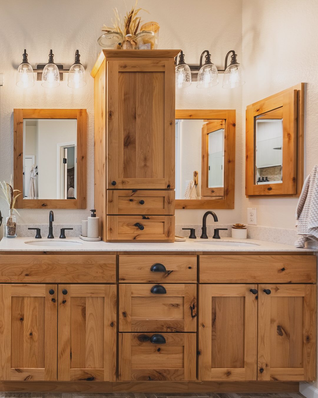Rustic Wood Vanity with Vintage Hardware