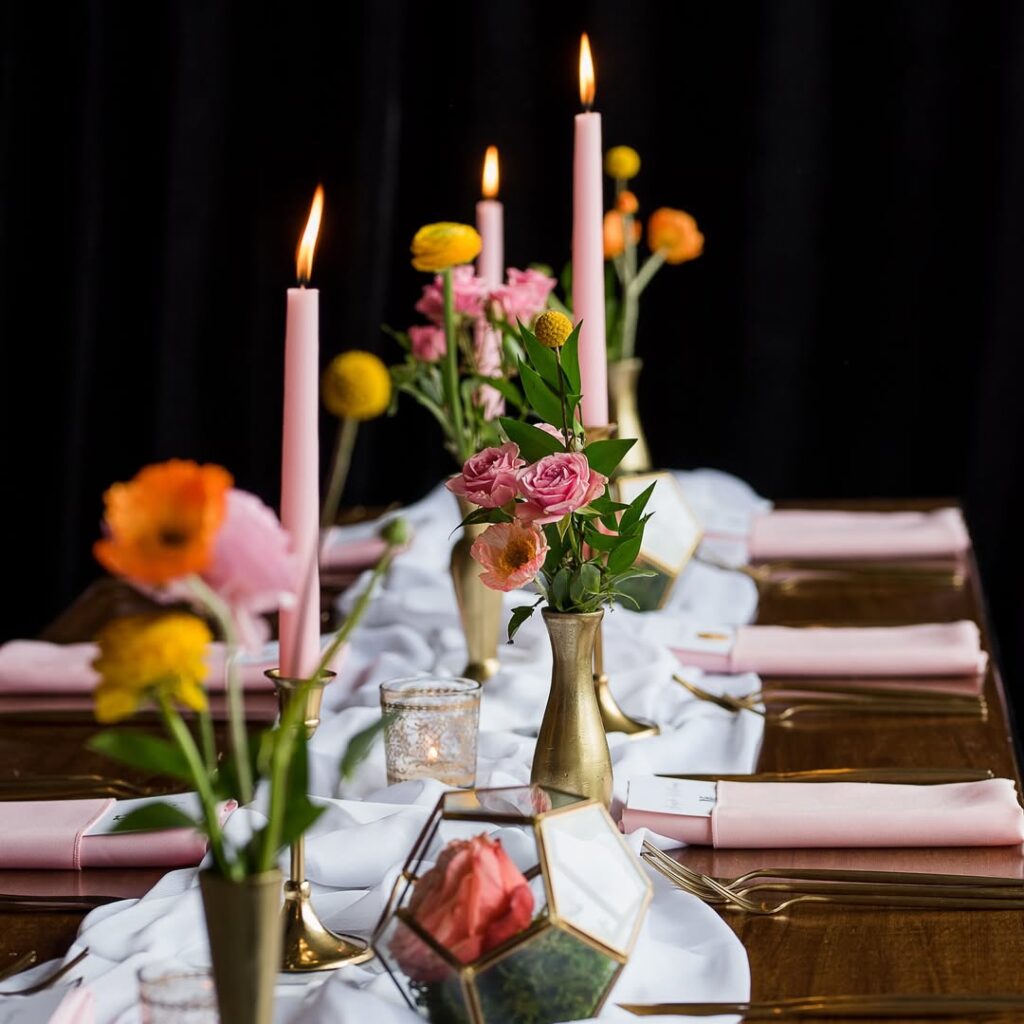 This arrangement pairs flowers with candles for romance. Use peonies, roses, and baby’s breath. Soft pastel tones enhance mood. Perfect for dinners or weddings. Low arrangements keep views clear. Candlelight highlights petals beautifully.